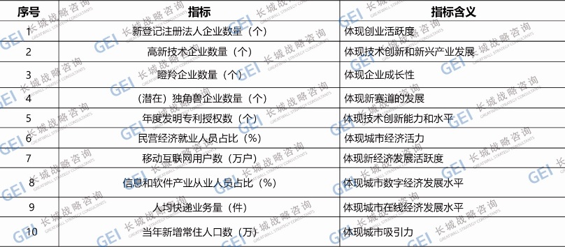 中国城市新经济十大指标