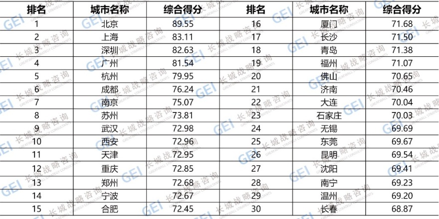 中国城市新经济前30强